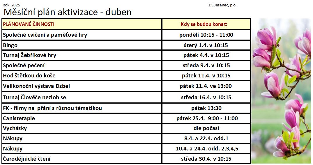 Plán měsíc dubna 2025