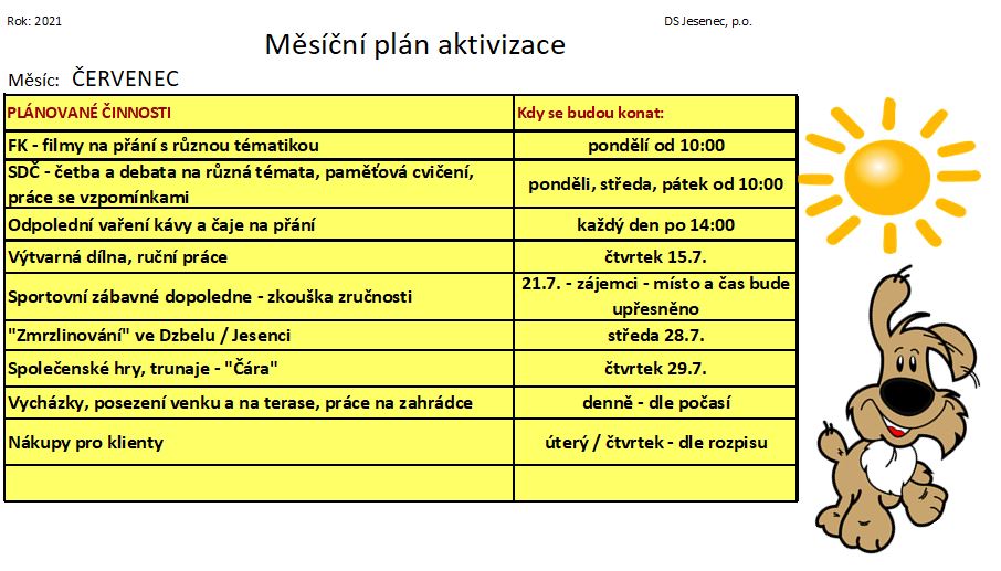 Plán měsíce července 2021