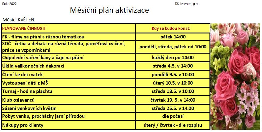 Plán měsíce května 2022