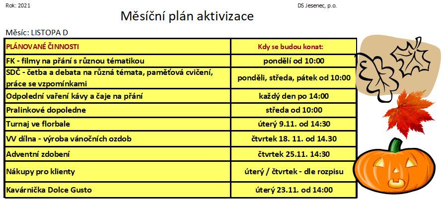 Plán měsíce listopadu 2021