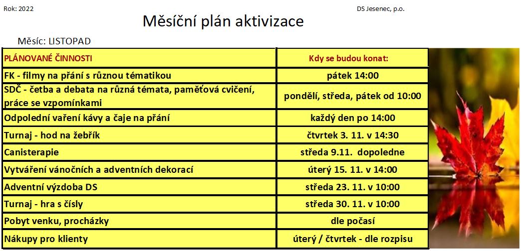 Plán měsíce listopadu 2022