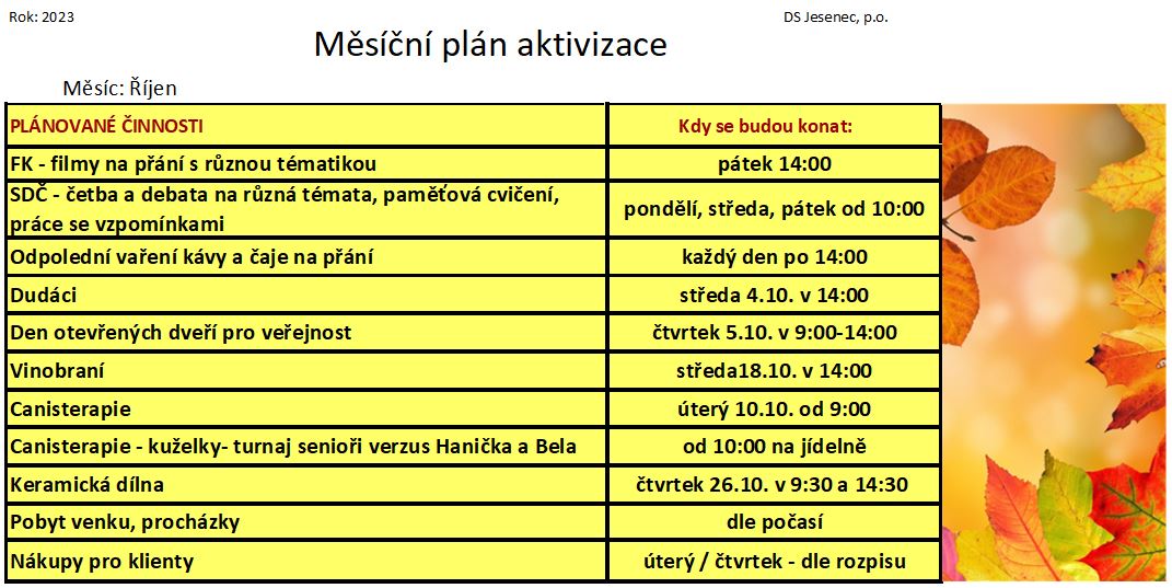 Plán měsíce října 2023