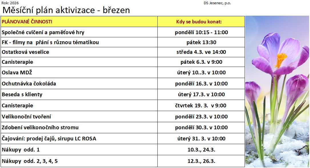 Plán měsíce března 2026