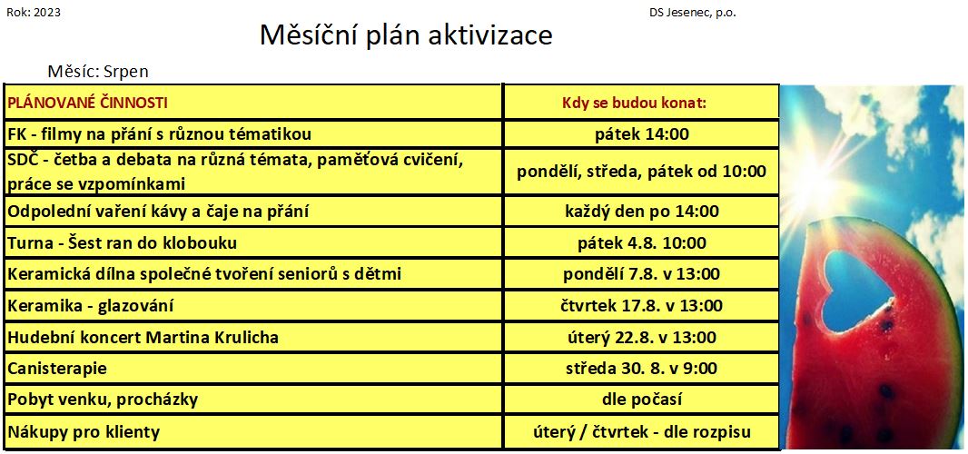 Plán měsíce srpna 2023