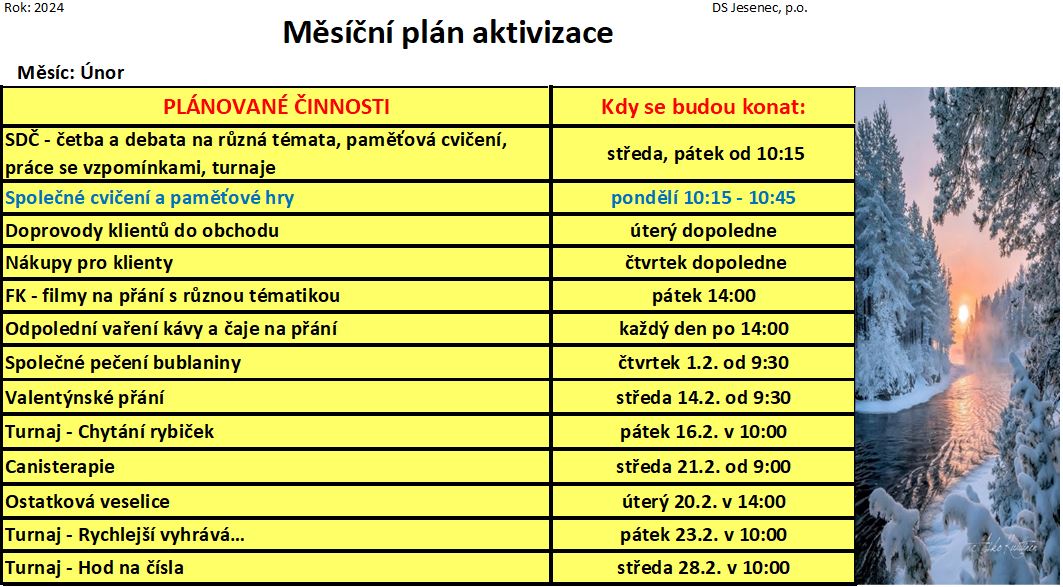 Plán měsíce února 2024