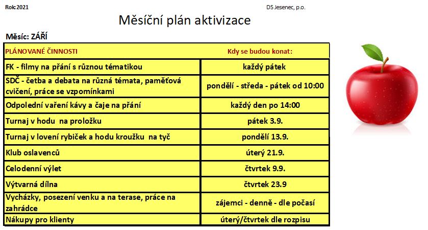Plán měsíce září 2021